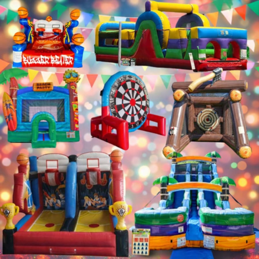 * **Aloha Bounce House (15' x 15')** – Classic bouncing fun with a bright tropical theme that’s perfect for younger guests.
